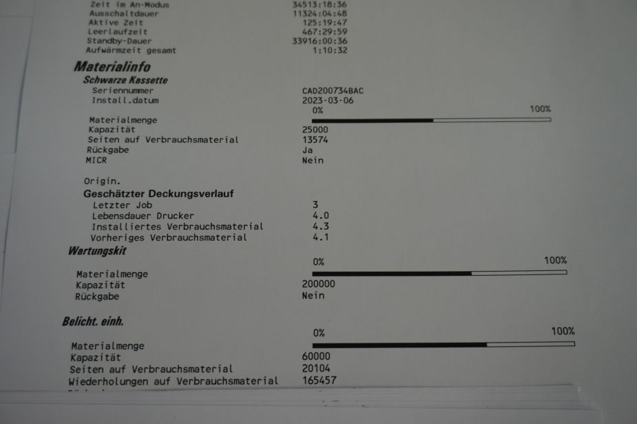 - Tonerstand: ca. 50 %* (*keine Gewähr auf Restlaufzeit der Verbrauchsmaterialien)