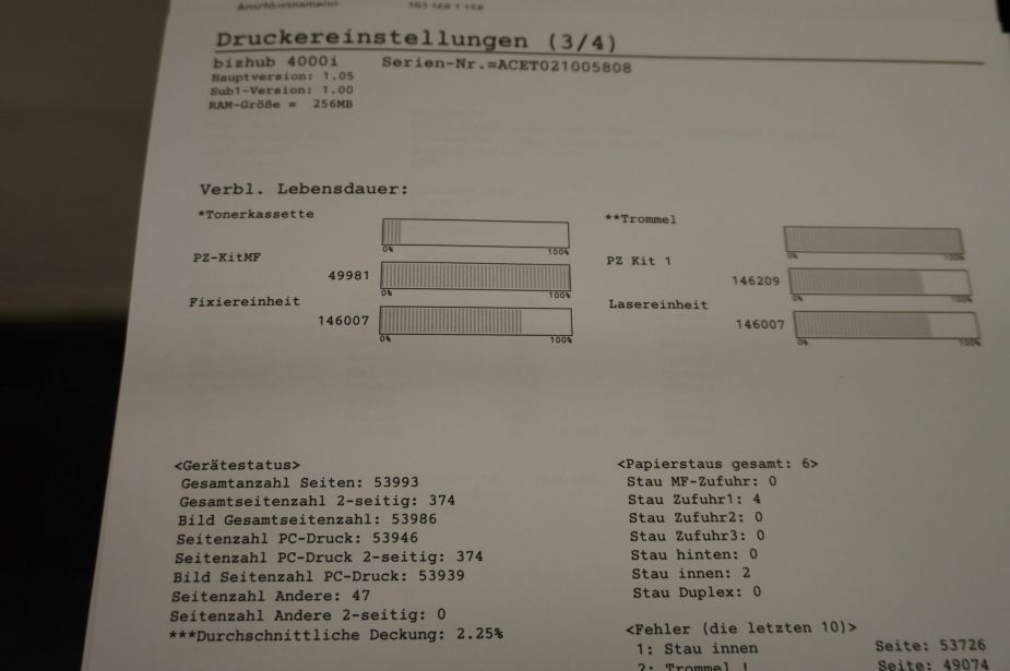 • Trommelstand: ca. 99 %* (*keine Gewähr auf Restlaufzeit der Verbrauchsmaterialien)