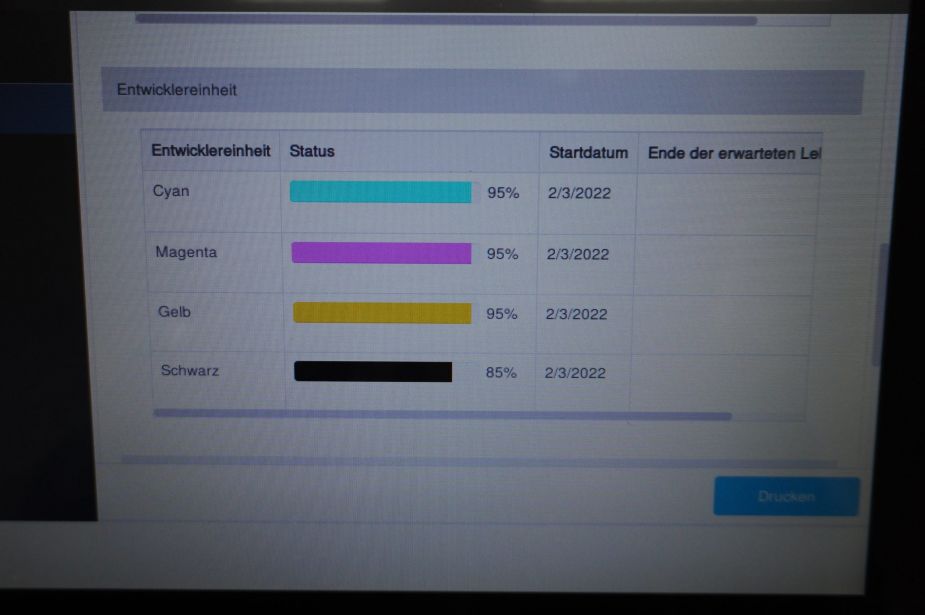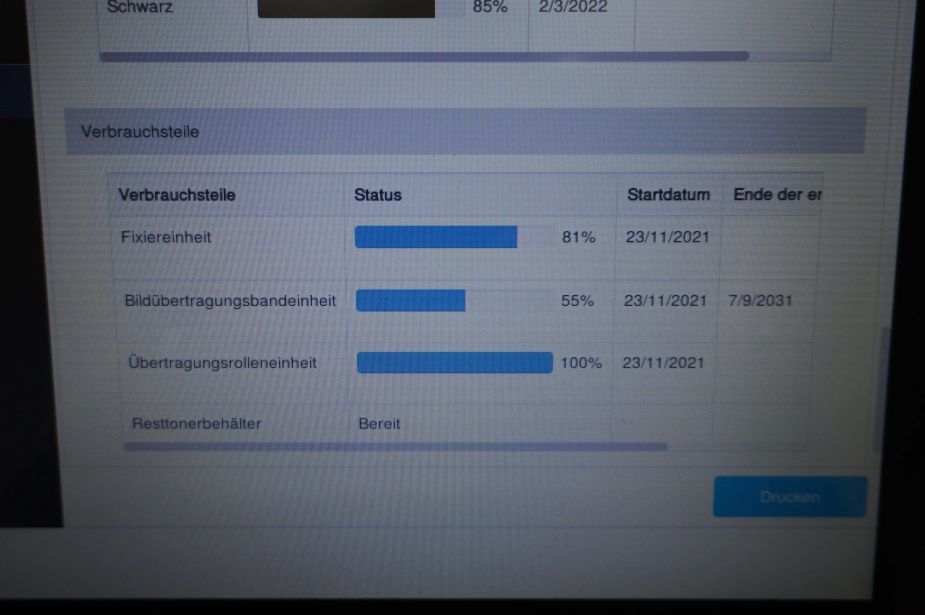 - Zählerstand nur 54.900 Farbseiten und 96.100 s/w!