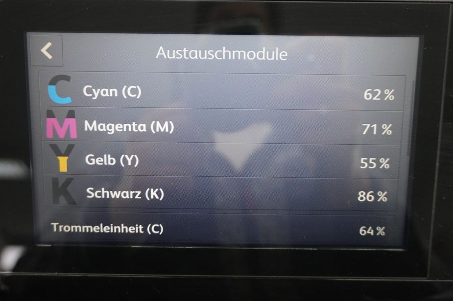 - Tonerstand*: sh. Bilder (*keine Gewähr auf Restlaufzeit der Verbrauchsmaterialien)
